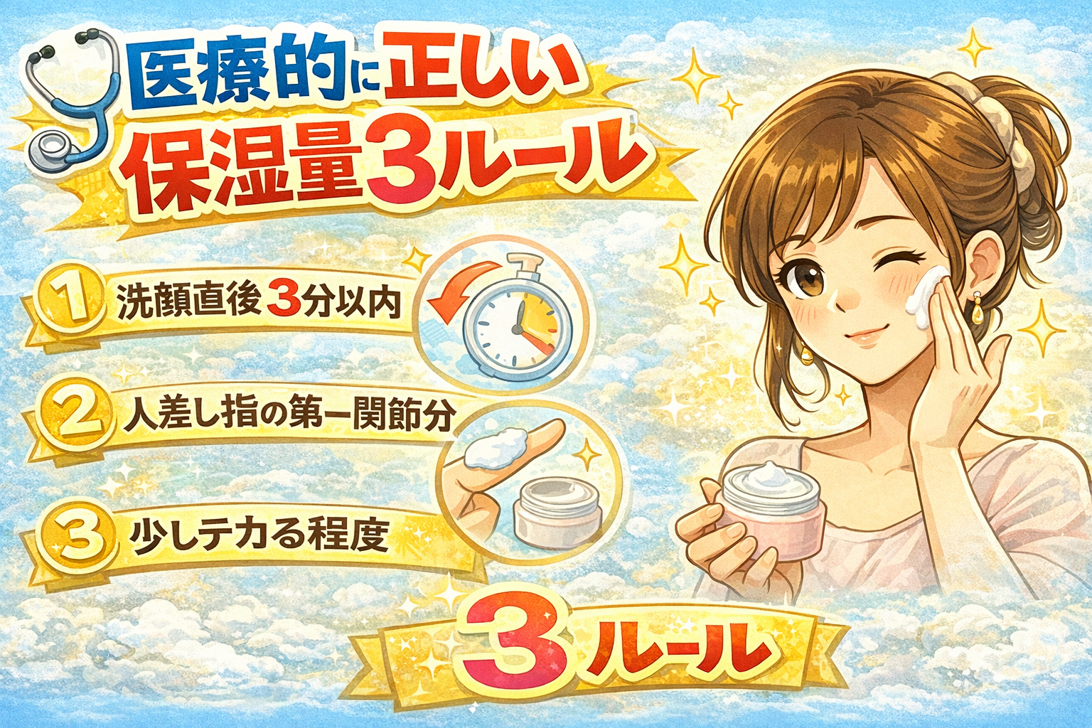 乾燥が気になる季節ほど、保湿は「多ければ多いほど良い」と思いがち。でも実は、塗りすぎるとベタつき・毛穴目立ち・ゆらぎの原因になることがあります。肌のうるおいは角質層が満たされた時点で頭打ちになり、それ以上は“重さ”として残りやすいんです。この記事では、40代以降の肌でも失敗しにくい化粧水・乳液/クリームの目安量と、ちょうどいい仕上がりの見極め方をまとめます。このあと本文で、医学的な理由も含めて詳しく解説するね。