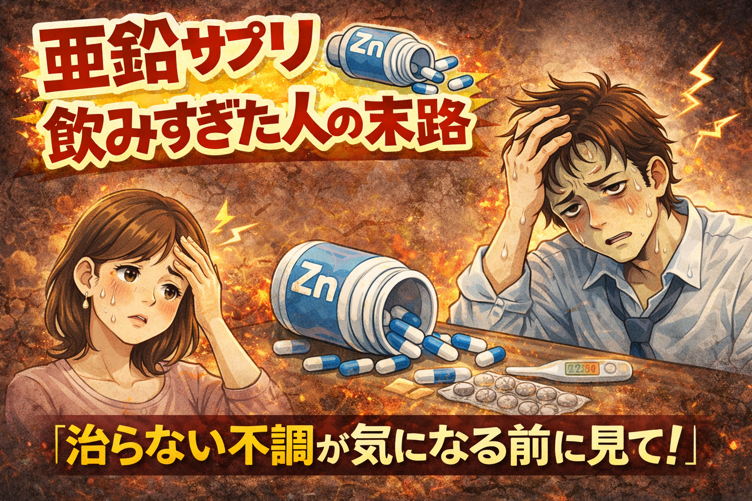 亜鉛は体に必要なミネラルですが、サプリで簡単に摂りすぎてしまうのが落とし穴。